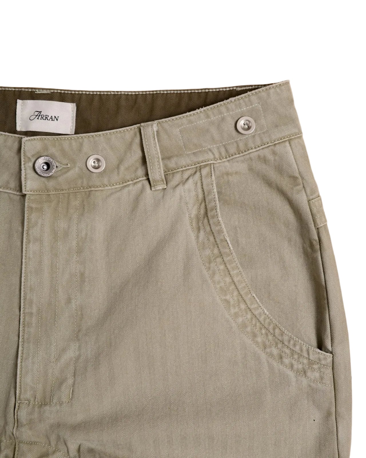 - Contrast herringbone fabric on inner waistband
